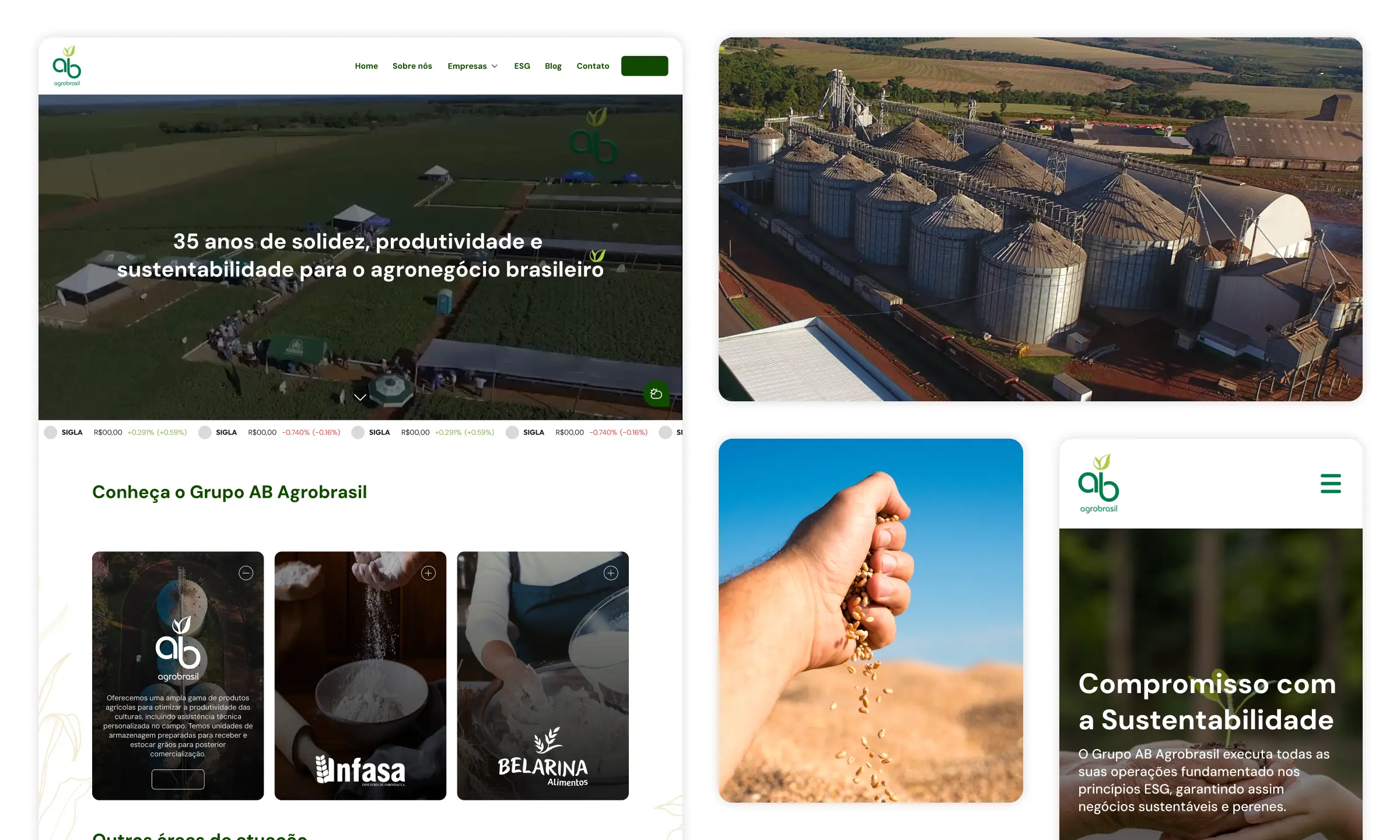 A AB Agrobrasil enfrentava o desafio de consolidar informações de suas múltiplas fazendas e setores industriais em um único portal acessível e eficiente. Nossa equipe desenvolveu um site robusto e intuitivo, que integra todas as operações da empresa de forma coesa. Implementamos funcionalidades avançadas que permitem aos usuários navegar facilmente entre diferentes áreas de atuação, acessar dados em tempo real sobre produção agrícola, tecnologias utilizadas e práticas sustentáveis adotadas. Com essa solução, a empresa conseguiu centralizar suas informações, melhorar a comunicação interna e externa, e ampliar sua presença online de maneira significativa.