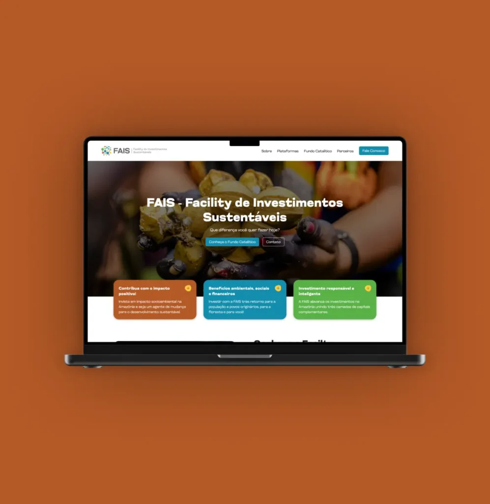 O objetivo era criar uma landing page page clean com cores vibrantes, destacando a importância e força da Facility no setor de Blended Finance.