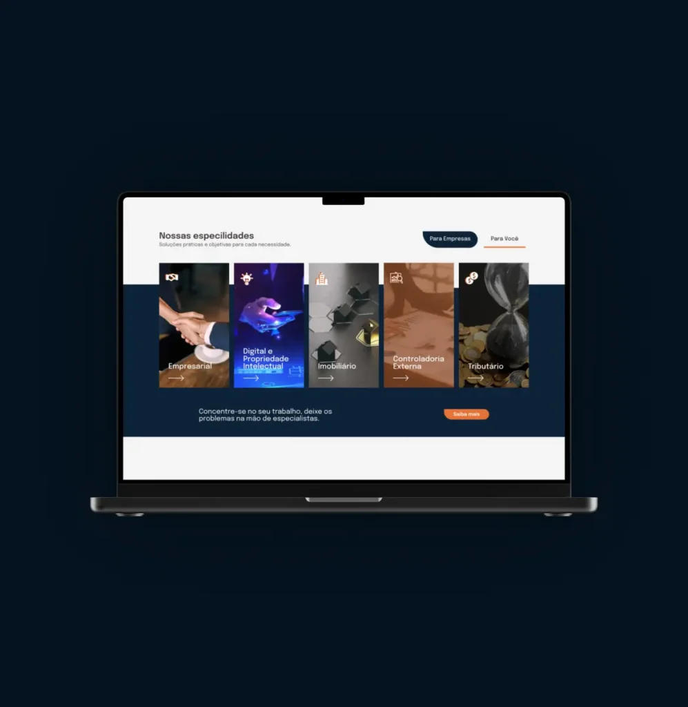 O maior desafio foi criar um site que não apenas detalhasse os serviços jurídicos, mas também fosse fácil de navegar para um público diversificado. Nossa solução foi desenvolver um site altamente funcional, com uma navegação intuitiva e uma estrutura que apresenta informações técnicas de forma acessível. Isso garantiu que tanto pessoas físicas quanto empresas encontrassem o que precisavam rapidamente, resultando em uma experiência fluida para o usuário.