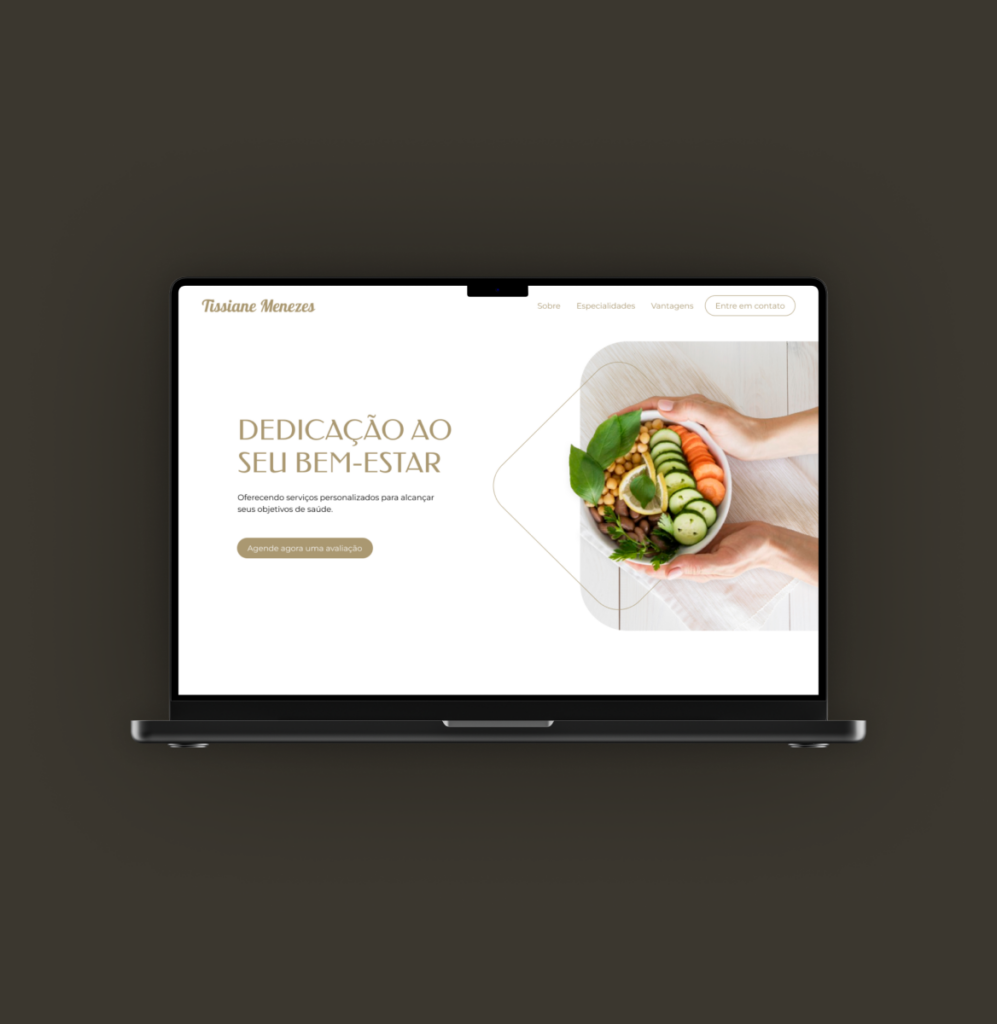 Tissiane Menezes buscava uma plataforma digital para apresentar suas especialidades de forma direta e profissional. Desenvolvemos uma landing page clean, destacando suas áreas de atuação (Nutrição Funcional, Modulação Intestinal e Desparasitação) e facilitando o acesso dos clientes aos serviços oferecidos. A solução focou em uma navegação simples e intuitiva, com informações claras e um design que reflete seu profissionalismo.