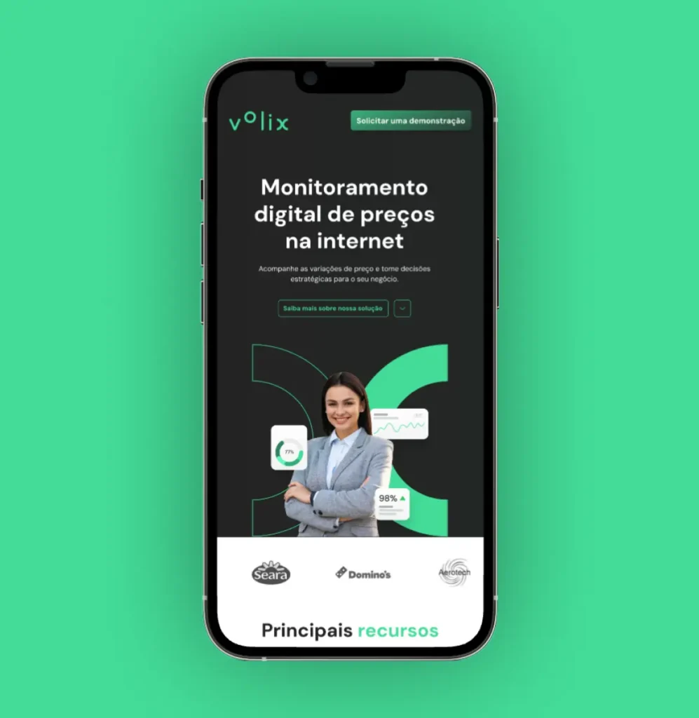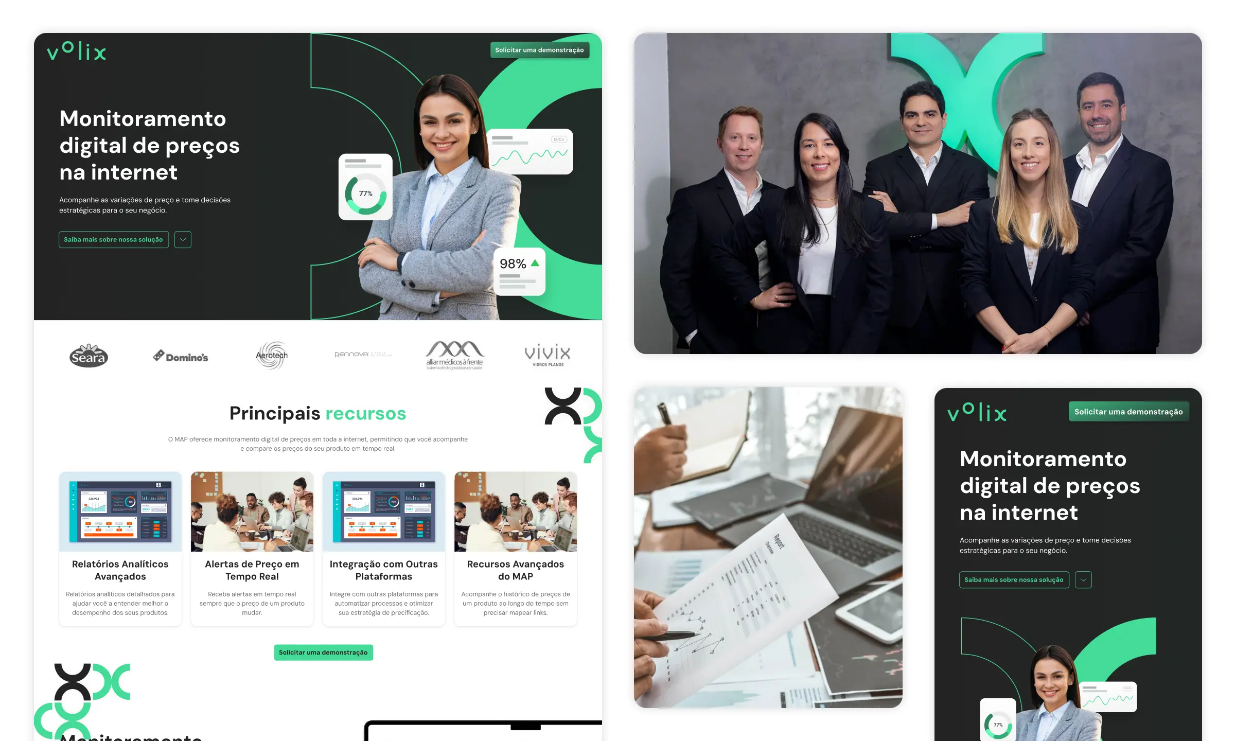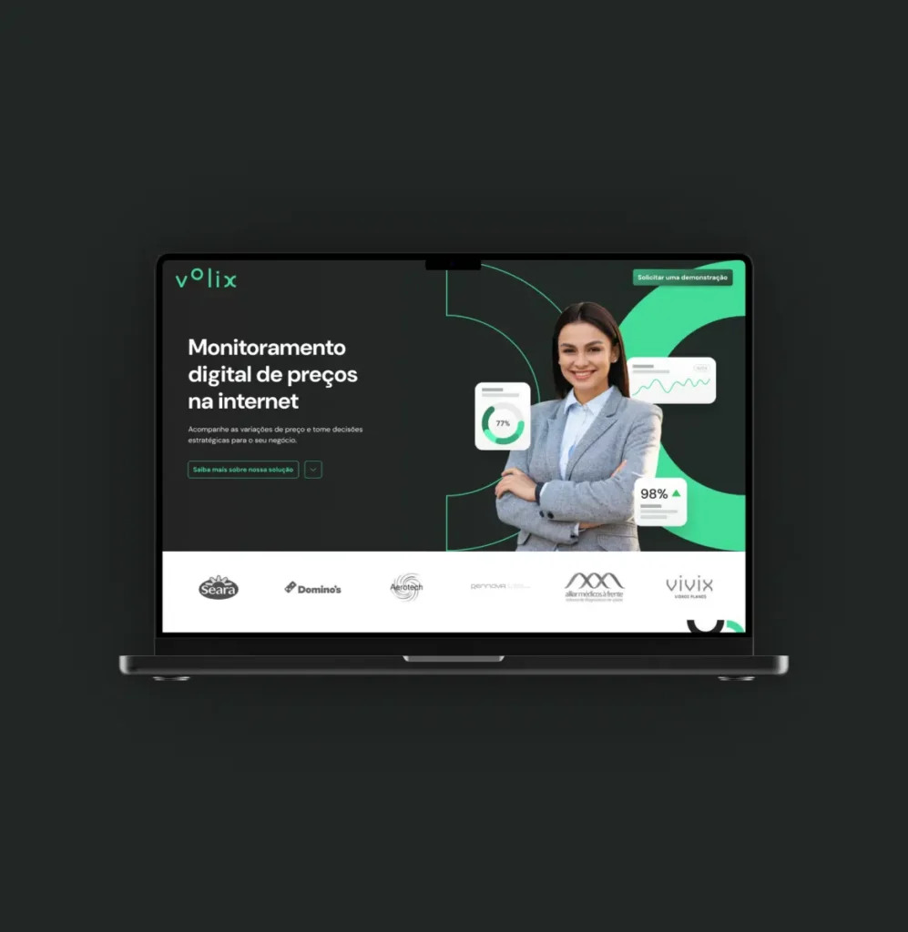 O desafio era criar uma página simples e objetiva, que facilitasse a compreensão dos serviços da Volix e levasse o usuário a agendar uma demonstração rapidamente. Desenvolvemos uma landing page com design atraente e chamadas para ação estrategicamente posicionadas. Elementos visuais e uma narrativa envolvente foram utilizados para destacar os diferenciais do serviço, resultando em alta taxa de conversão nos primeiros dias de lançamento.